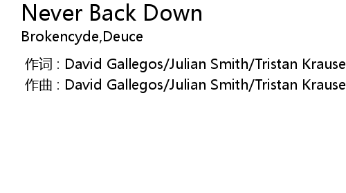| [00:00.000] | 作曲 : David Gallegos/Julian Smith/Tristan Krause/Mike Kumagai |