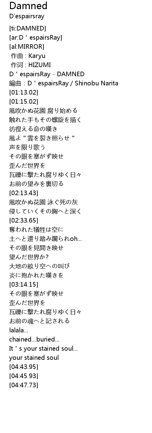 | [00:00.00] | D'espairsRay - DAMNED |