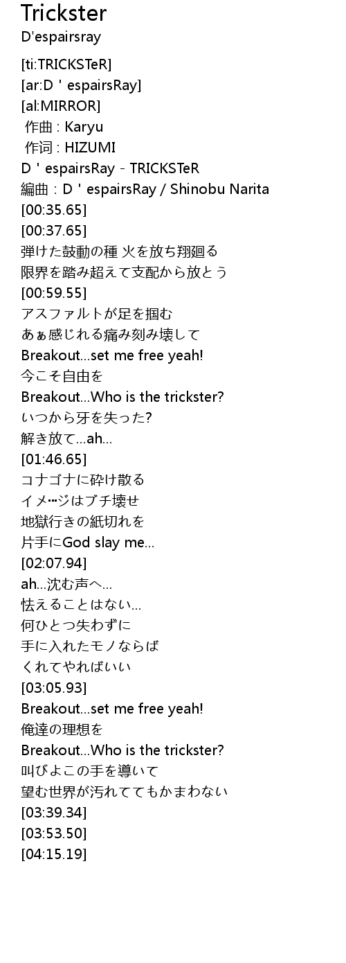 | [00:00.00] | D'espairsRay - TRICKSTeR |