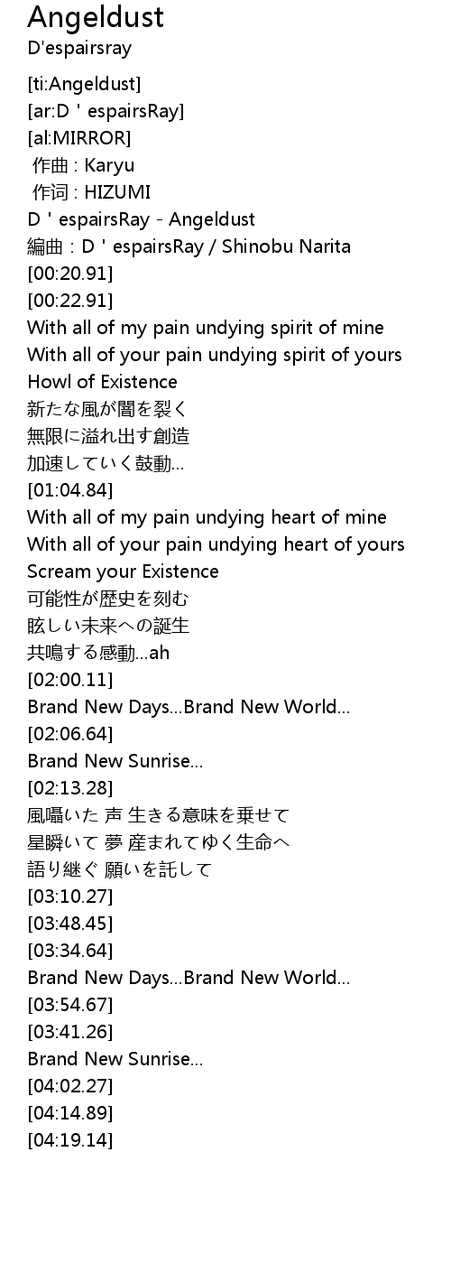 | [00:18.91] | biān qū: D espairsRay Shinobu Narita |