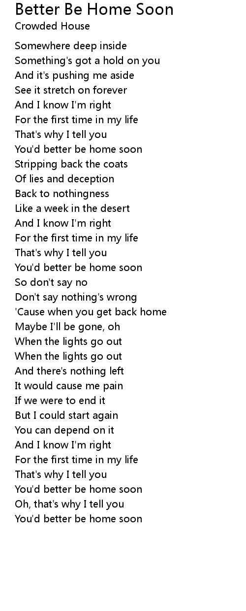 You'd better be home soon |