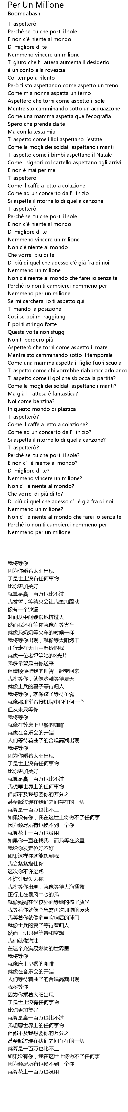 | [01:16.74] | Nemmeno un milione |