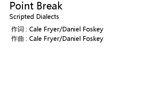 | [00:00.000] | zuo qu : Cale Fryer Daniel Foskey |