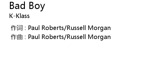 | [00:00.000] | 作词 : Paul Roberts/Russell Morgan |