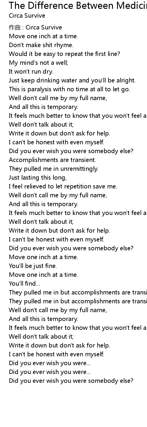| Song | The Difference Between Medicine And Poison Is In The Dose |