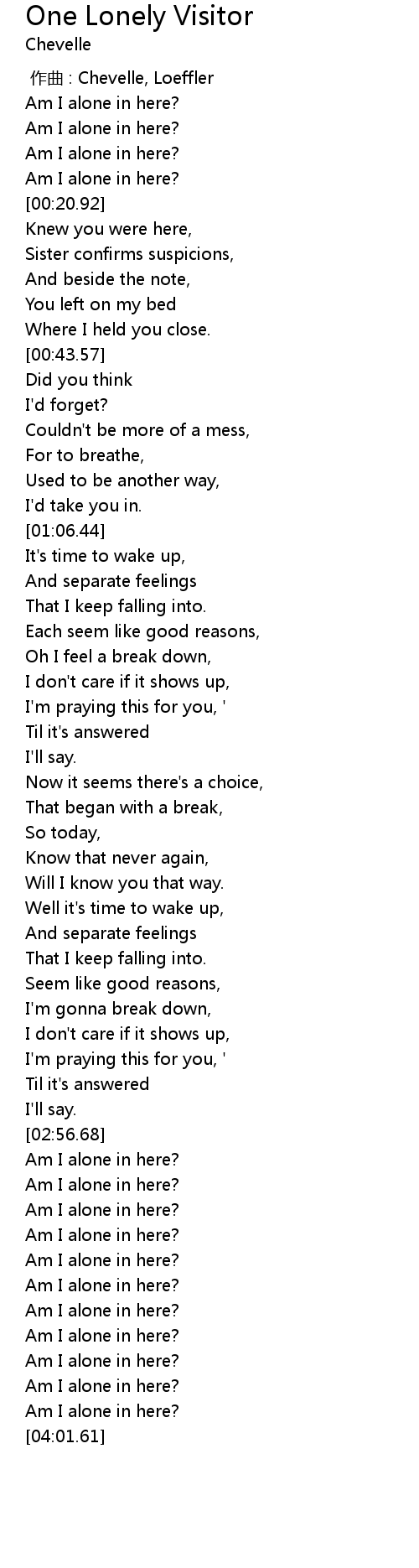 | [00:00.17] | Am I alone in here? |