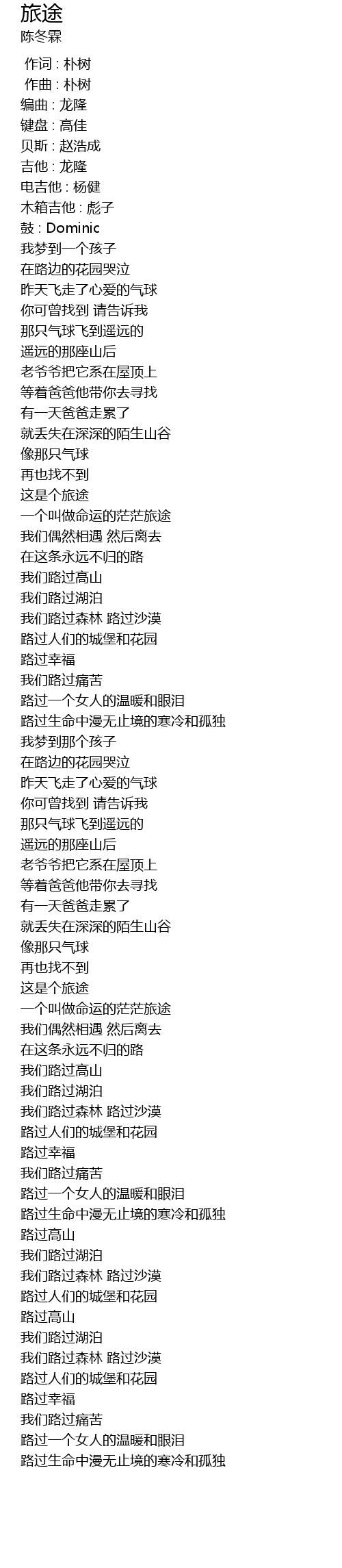 | [00:00.000] | 作词 : 朴树 |