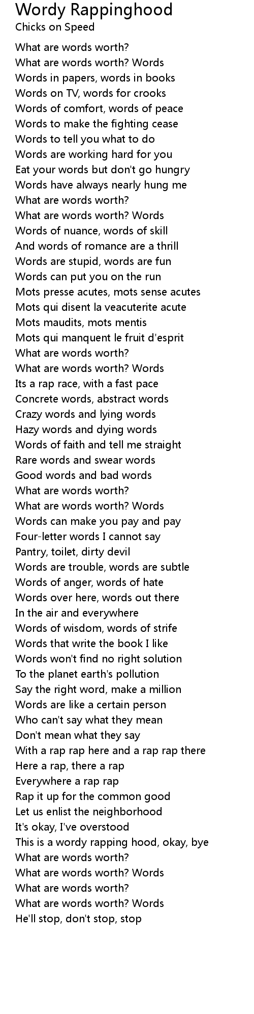 What are words worth? Words |