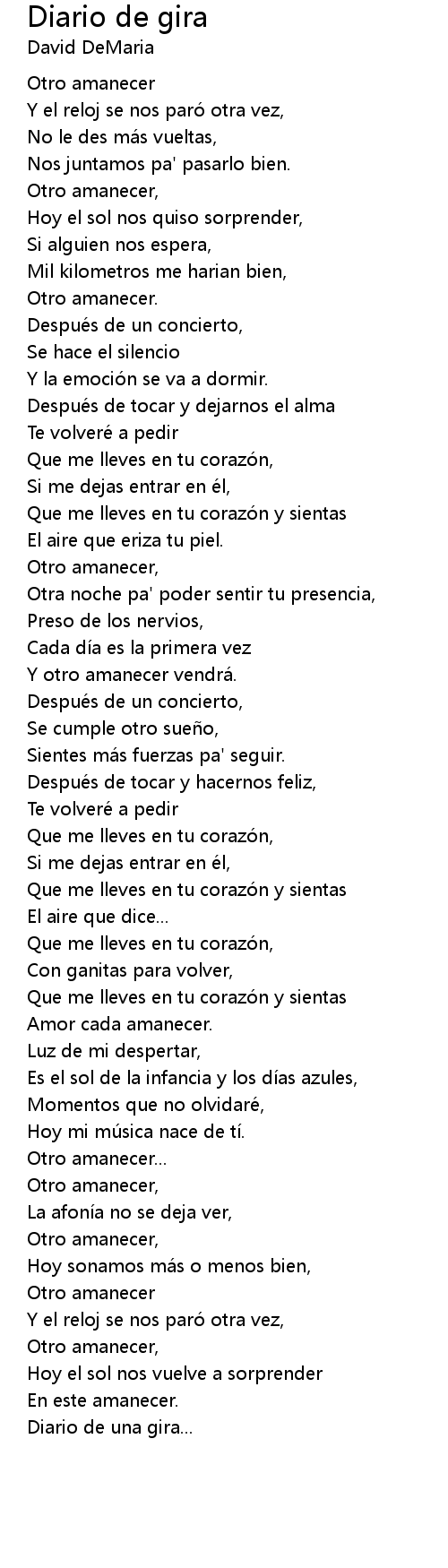 | Song | Diario de gira |