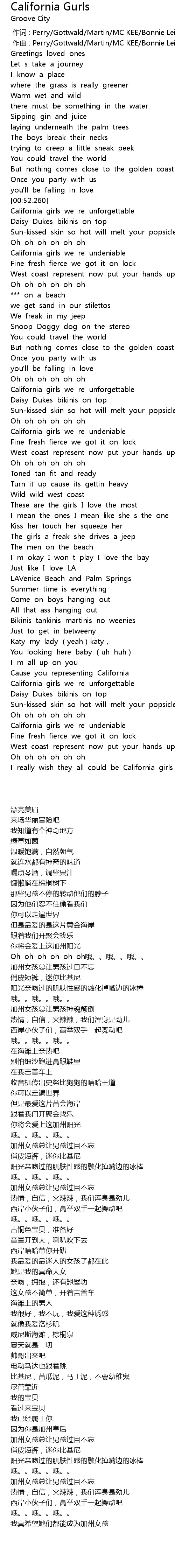| [00:00.000] | 作词 : Perry/Gottwald/Martin/MC KEE/Bonnie Leigh |