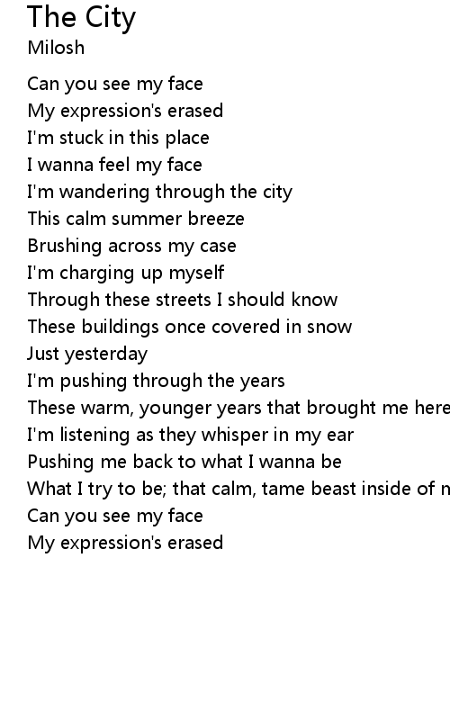 | I'm wandering through the city | |