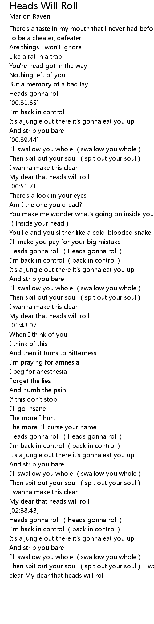 | [02:15.03] | Heads gonna roll Heads gonna roll |