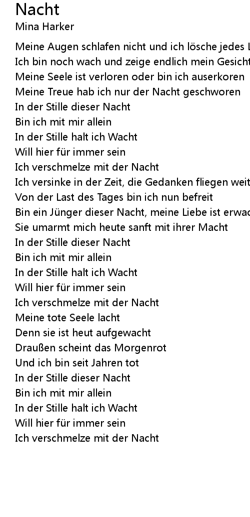 | Meine Augen schlafen nicht und ich l sche jedes Licht | |