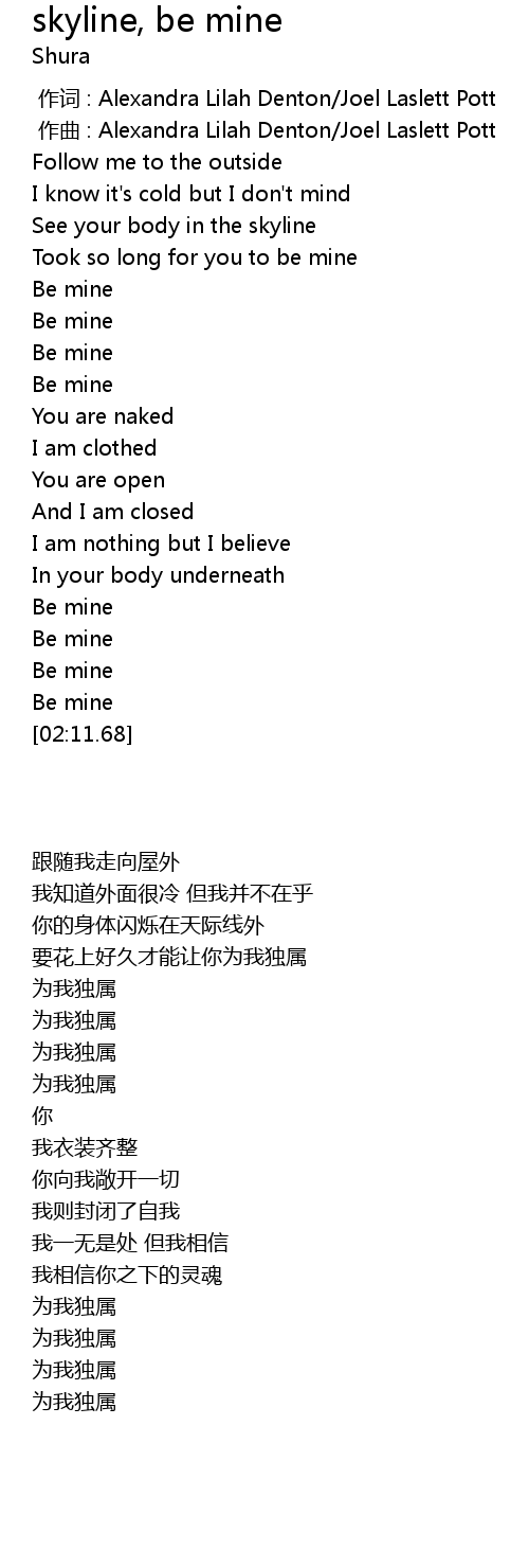 | [02:00.17] | Be mine |