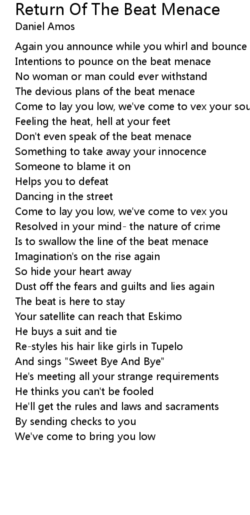 Don't even speak of the beat menace |