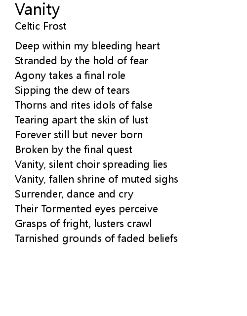 Vanity, silent choir spreading lies |