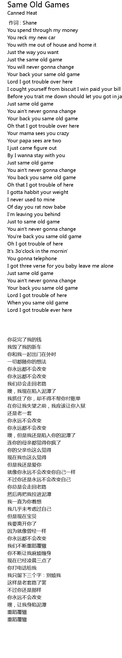 | [00:15.90] | Just the same old game |