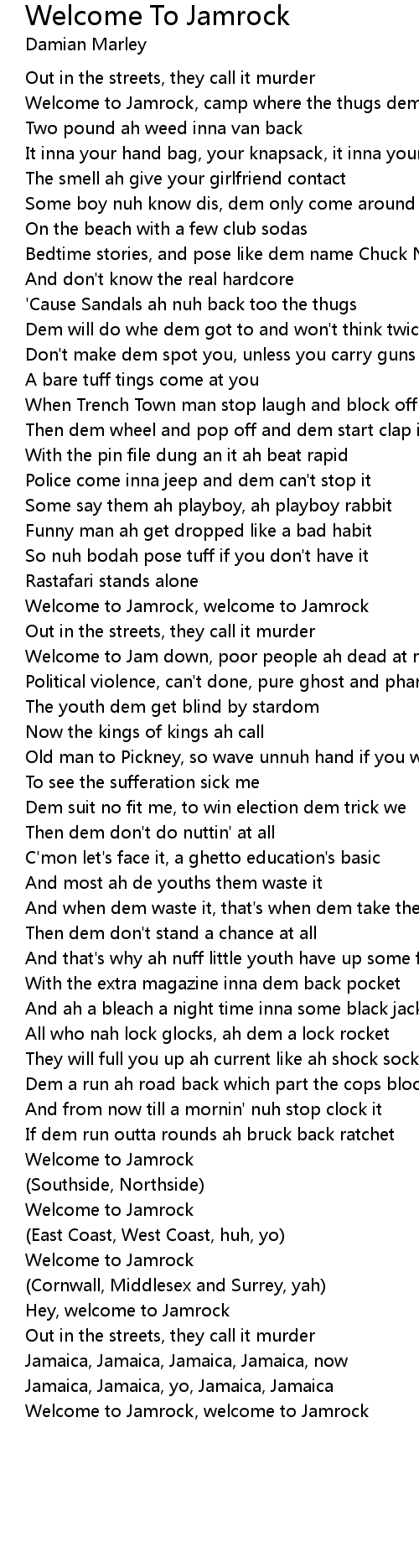 Hey, welcome to Jamrock |