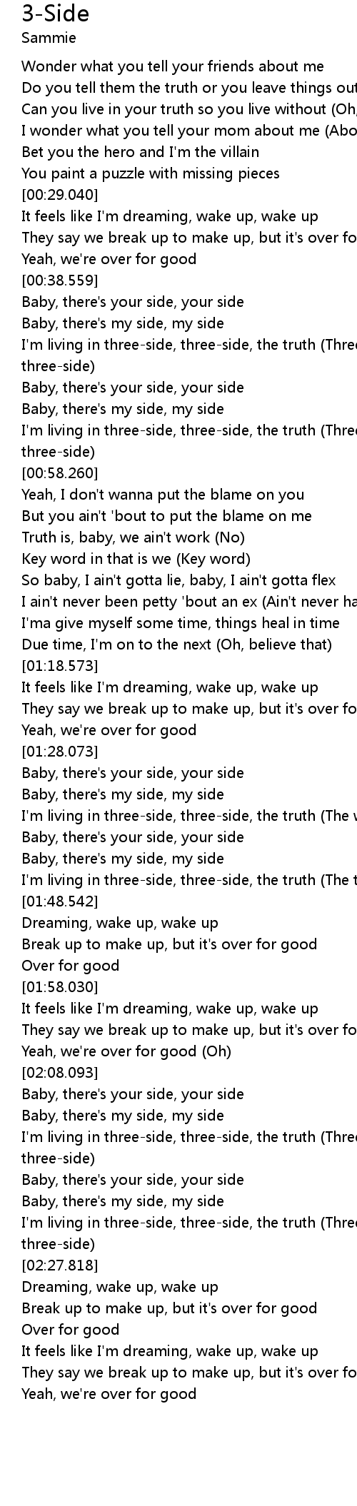 I'm living in three-side, three-side, the truth (Three-side, three-side) |