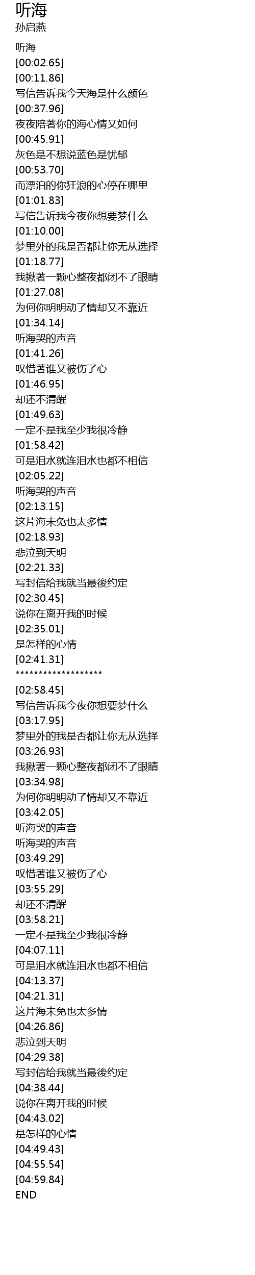 | [03:43.52] | tīng hǎi kū de shēng yīn |