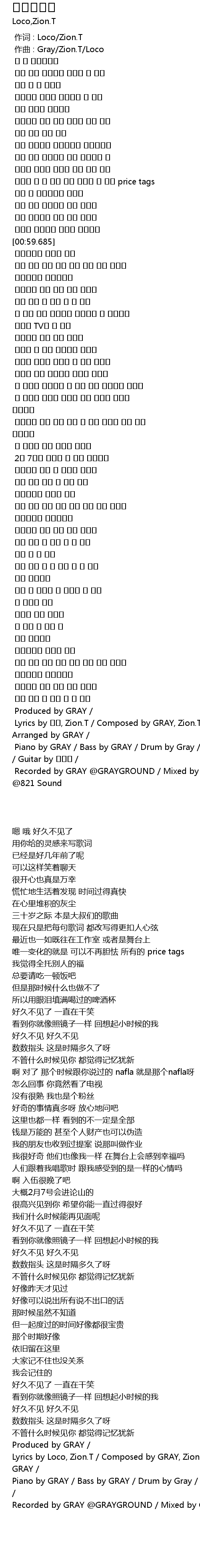| [00:01.000] | 作曲 : Gray/Zion.T/Loco |