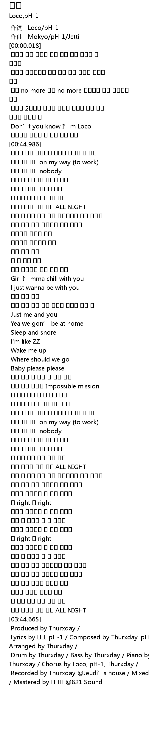 | [03:46.467] | Lyrics by 로꼬, pH-1 / Composed by Thurxday, pH-1, jetti / Arranged by Thurxday / |