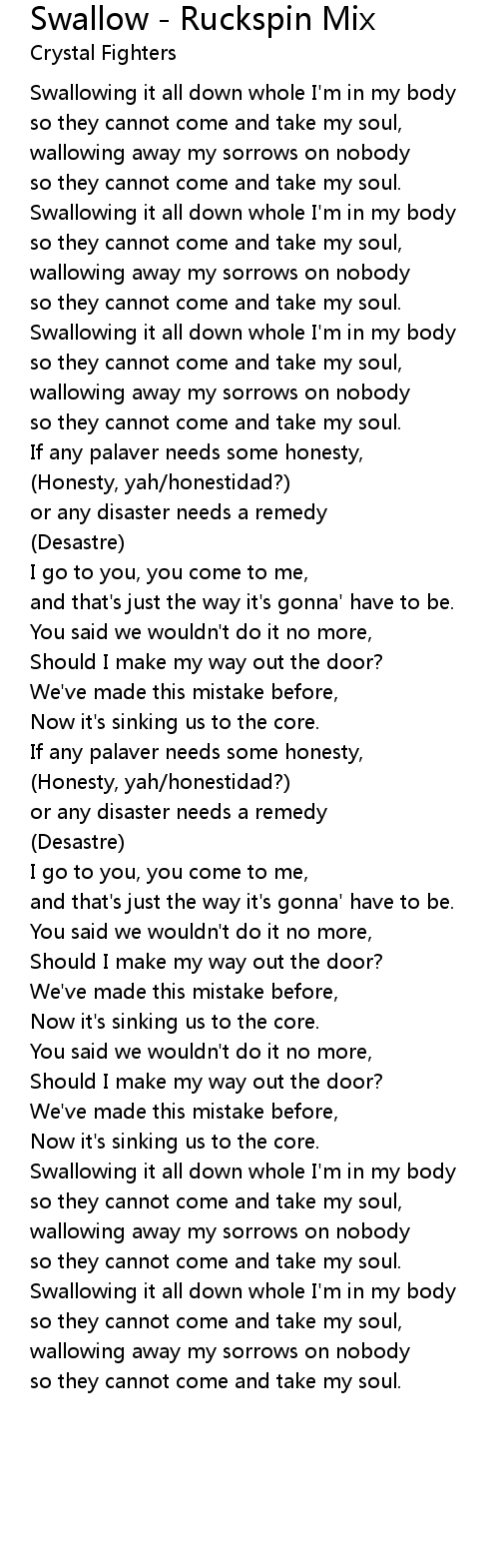 Swallowing it all down whole I'm in my body |