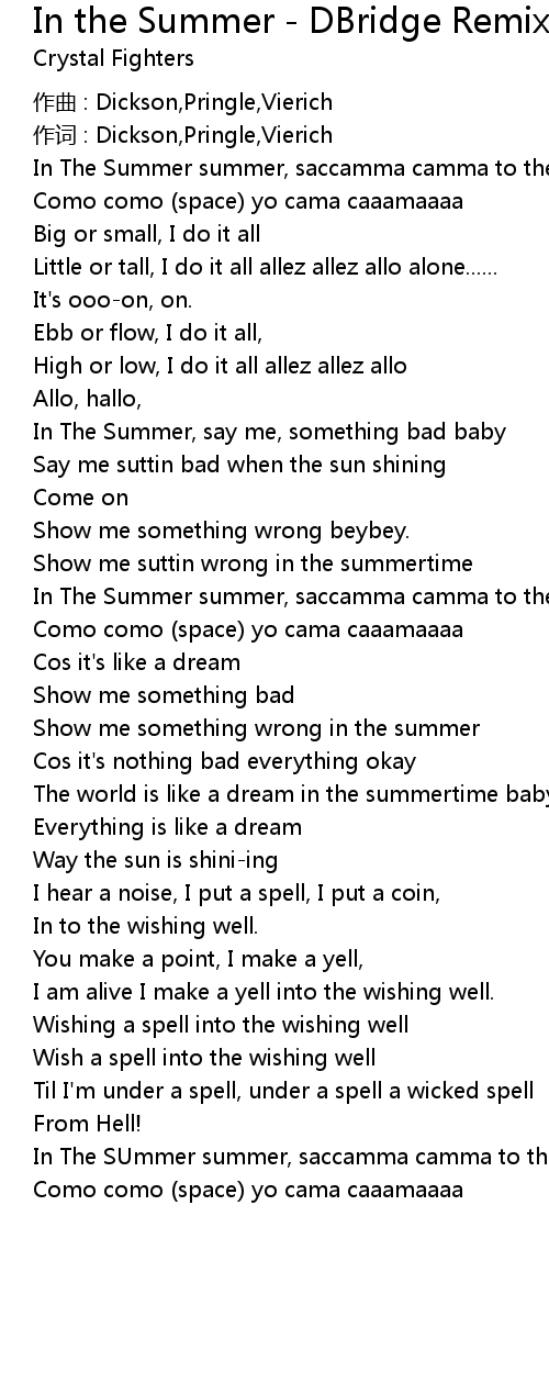 | In The Summer, say me, something bad baby | |