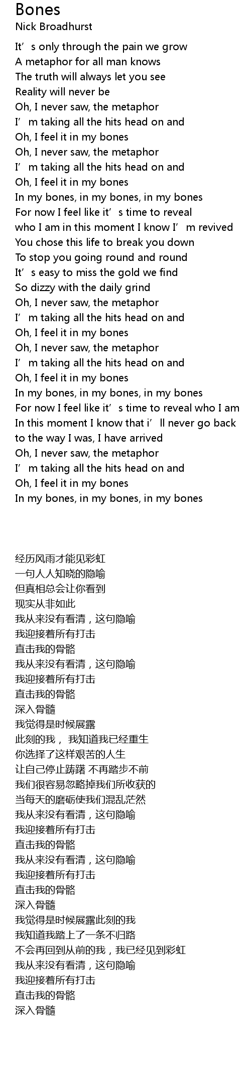 | [00:56.50] | In my bones, in my bones, in my bones |