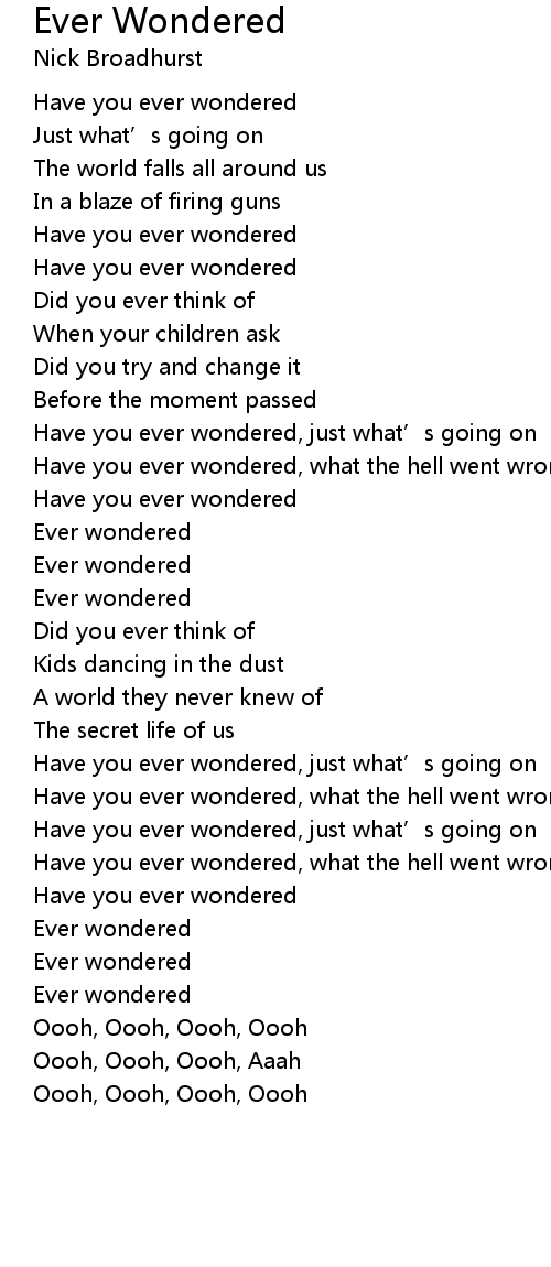 | [00:47.49] | Have you ever wondered, just what’s going on |
