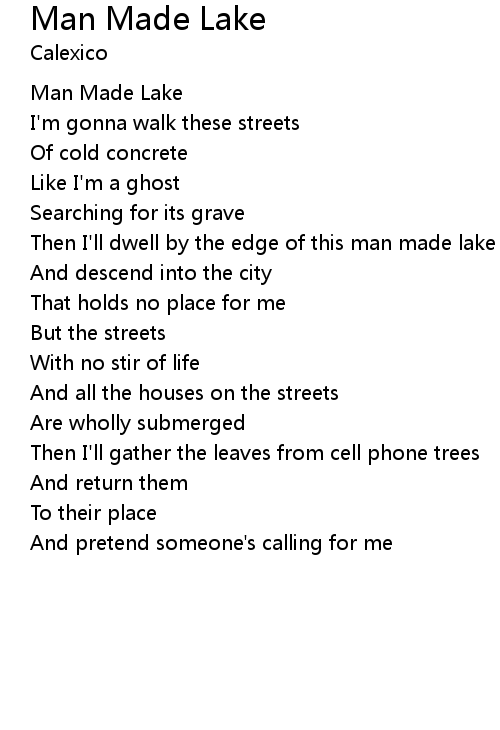 | Then I'll dwell by the edge of this man made lake | |