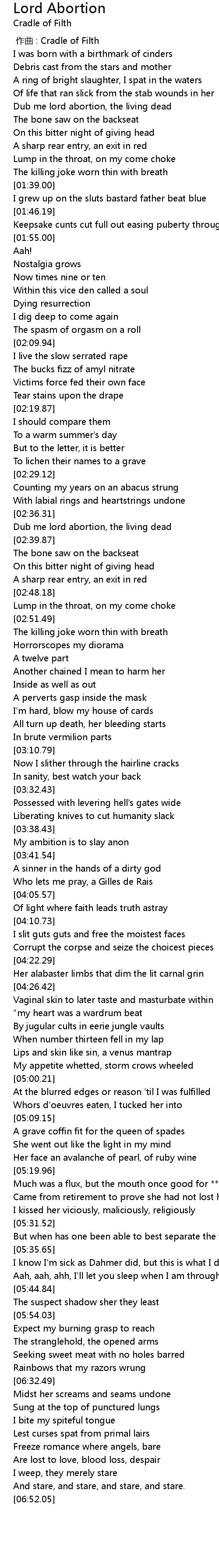 | [02:36.93] | Dub me lord abortion, the living dead |