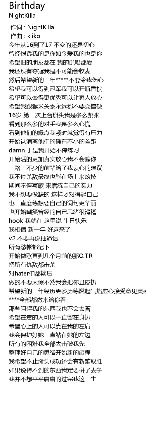 | [00:00.000] | 作词 : NightKilla |