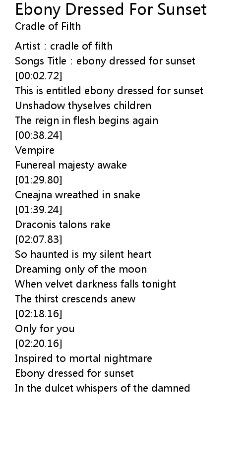 | [00:01.15] | Songs Title: ebony dressed for sunset |