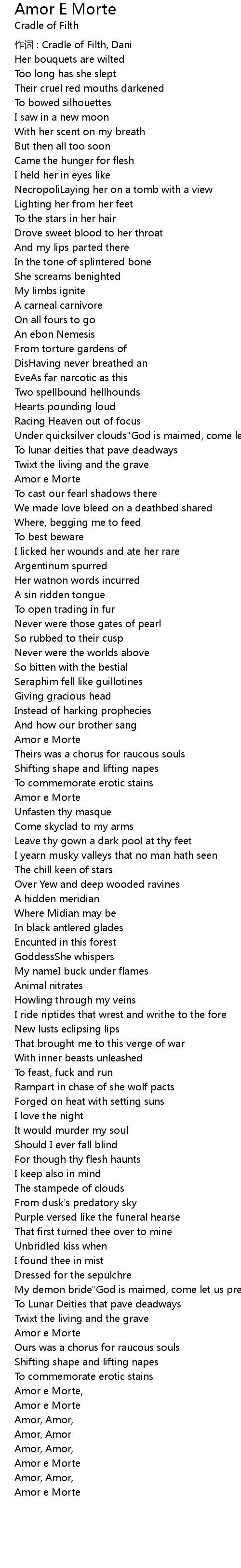 | 作词 : Cradle of Filth, Dani | |