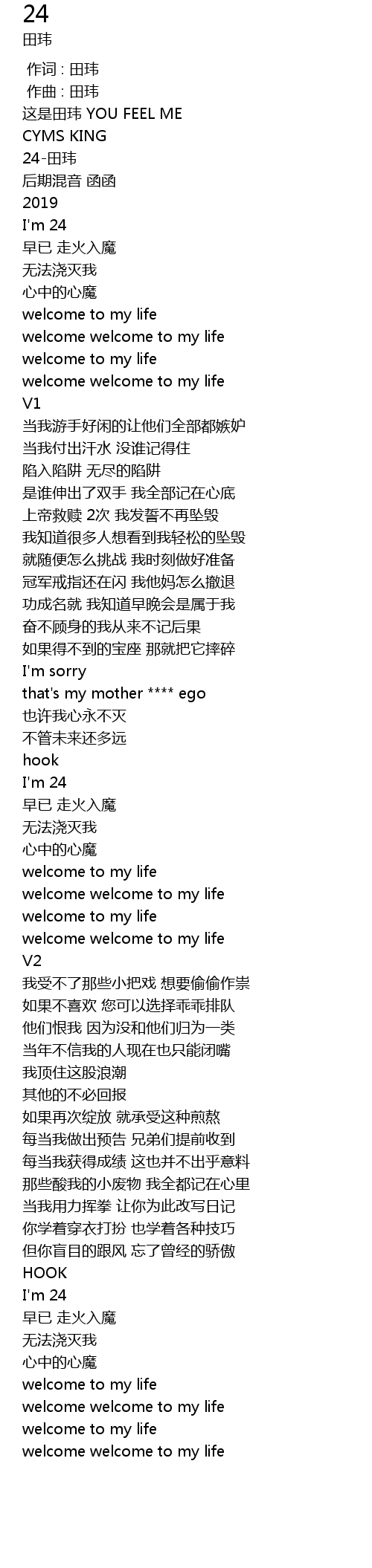 | [00:06.883] | 24 tián wěi |