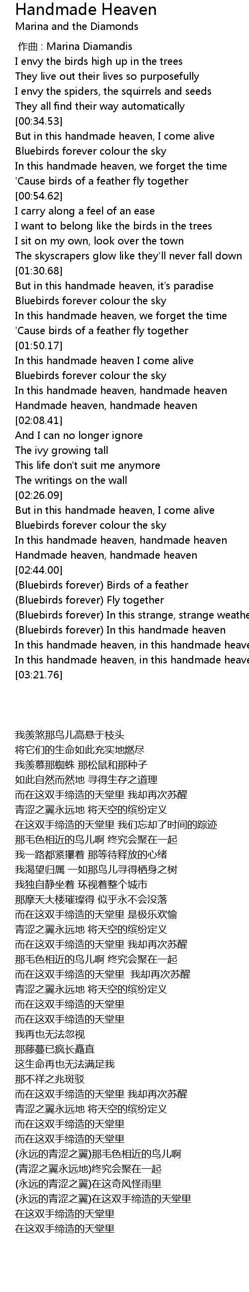 | [02:57.53] | Bluebirds forever In this handmade heaven |