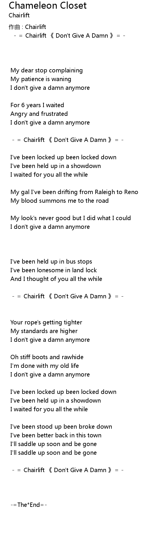 | -= Chairlift 《 Don't Give A Damn 》=- | |