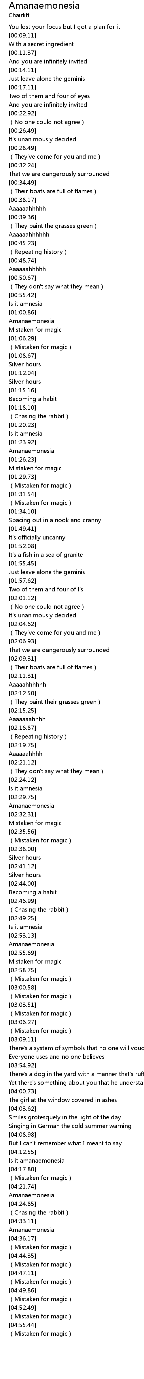 | [04:43.42] | (Mistaken for magic) |