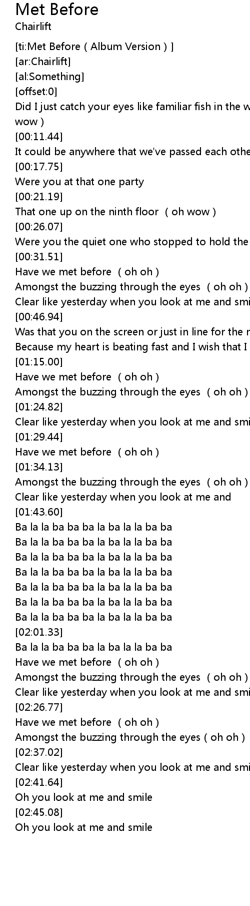 | [ti:Met Before(Album Version)] | |
