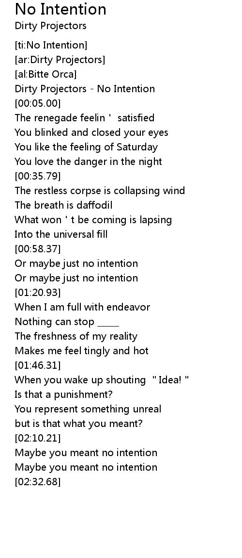 | [00:02.00] | Dirty Projectors No Intention |