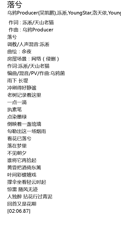 | [00:10.390] | 编曲/混音/PV/作曲:乌鸦菌 |