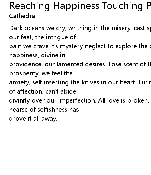 pain we crave it's mystery neglect to explore the depths to sanctity. We reach happiness, divine in |