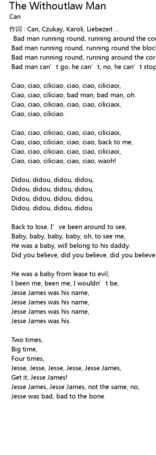 | Bad man can’t go, he can’t, no, he can’t stop. | |