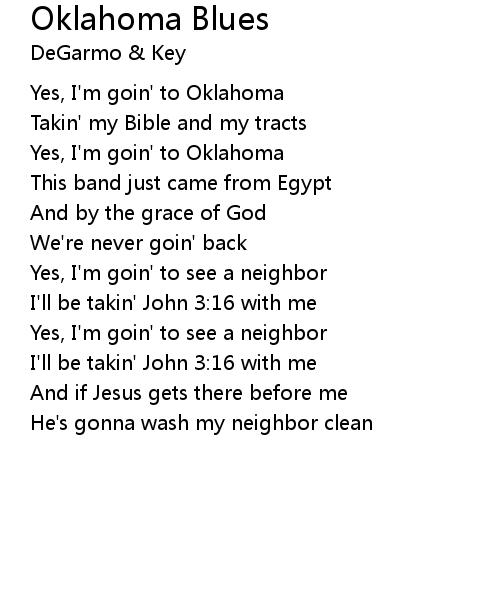 | Yes, I'm goin' to Oklahoma | |