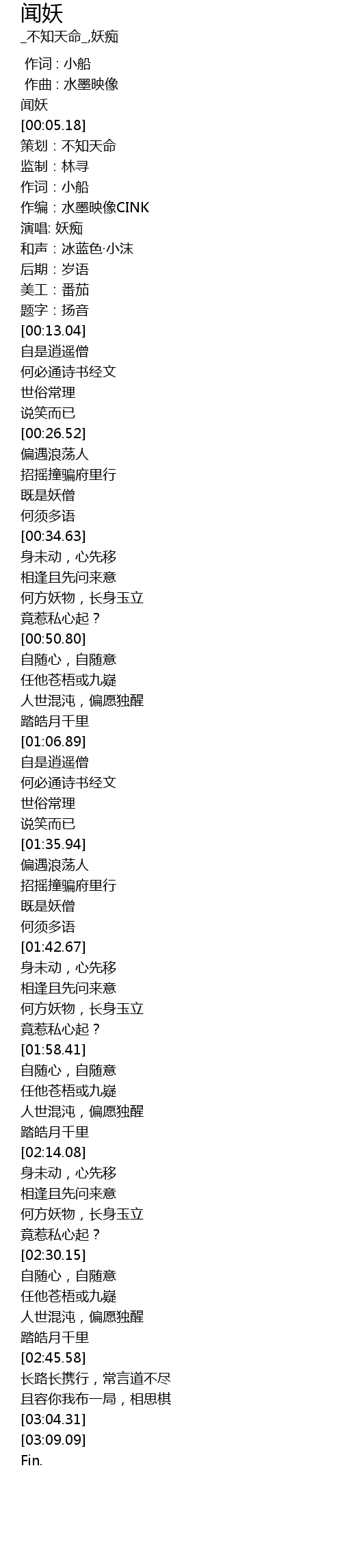 | [00:03.26] | 闻妖 |