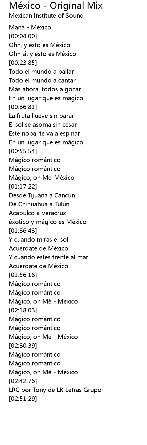| [02:39.92] | Mágico, oh Mé - México |