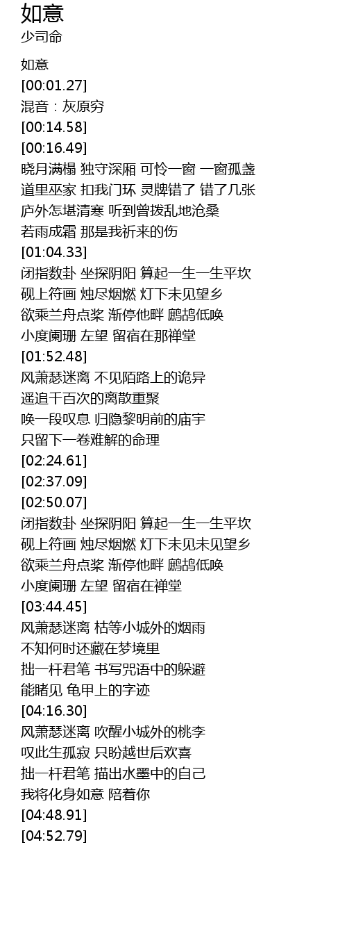 | [04:25.13] | 叹此生孤寂 只盼越世后欢喜 |