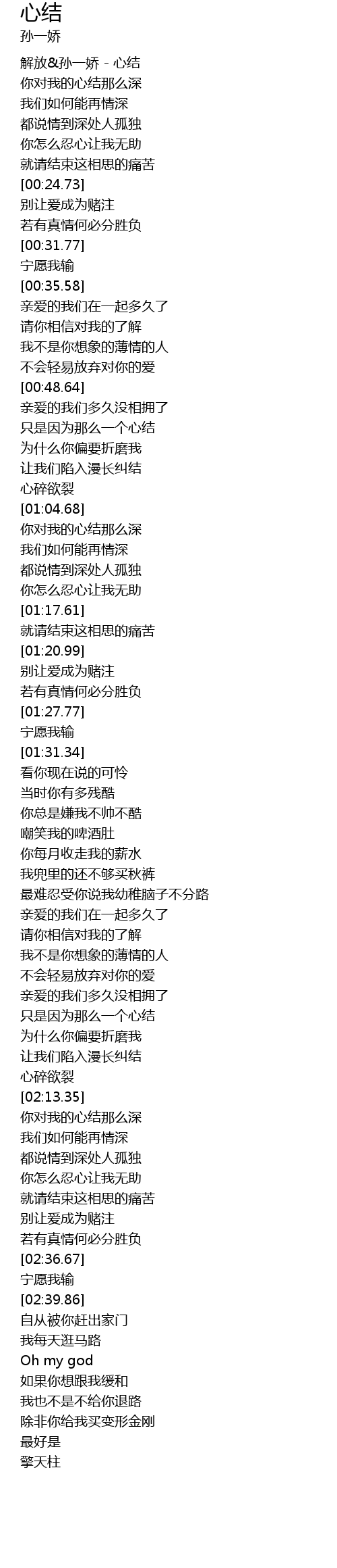 | [00:05.78] | 解放&孙一娇 - 心结 |