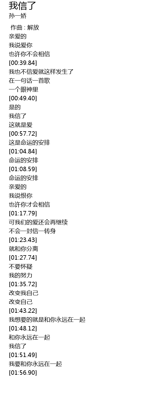 | [01:14.54] | yě xǔ nǐ cái huì xiāng xìn |